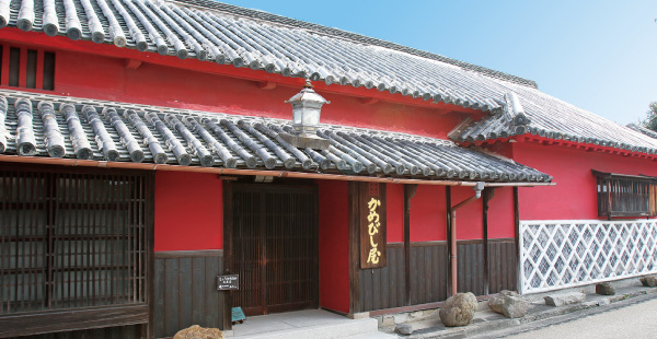 - 宿を運営する老舗醤油屋・かめびし屋の赤い壁は、引田のまち並みのシンボル。近くには豪商の屋敷をリニューアルした観光施設・讃州井筒屋敷などもある。