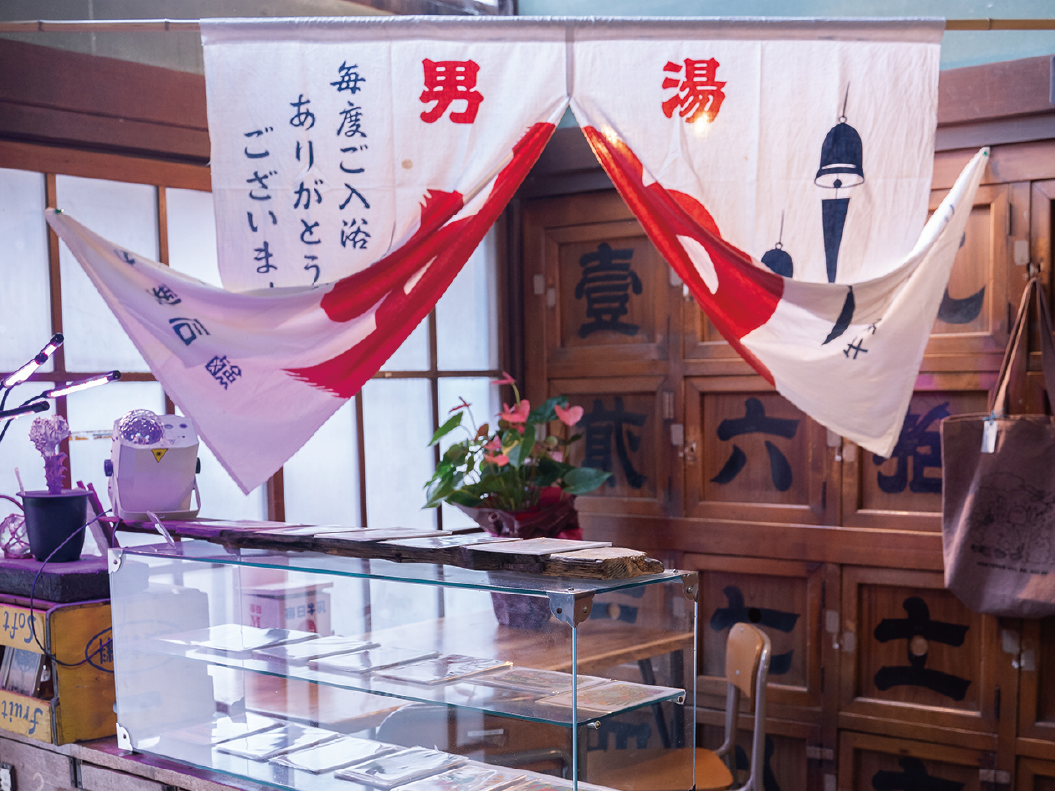 大正時代の銭湯をリノベーションした「藝術喫茶 清水温泉」は、どこを撮っても絵になるアートなカフェ。銭湯時代のタイル壁や鏡、木札の下駄箱がそのまま残る空間は、レトロ可愛い世界観で溢れています。