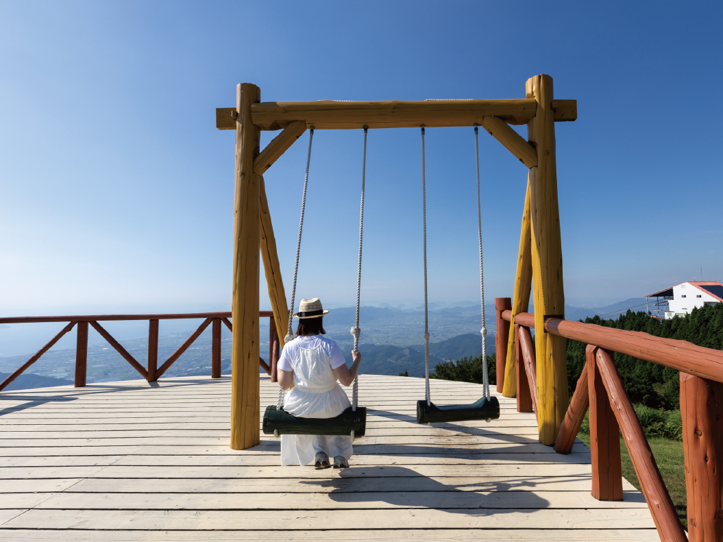 標高920mに位置する「雲辺寺山頂公園」。 まるで空へ飛び出すような「天空のブランコ」は、眼下に讃岐平野と瀬戸内海が広がる最高のフォトスポットです!